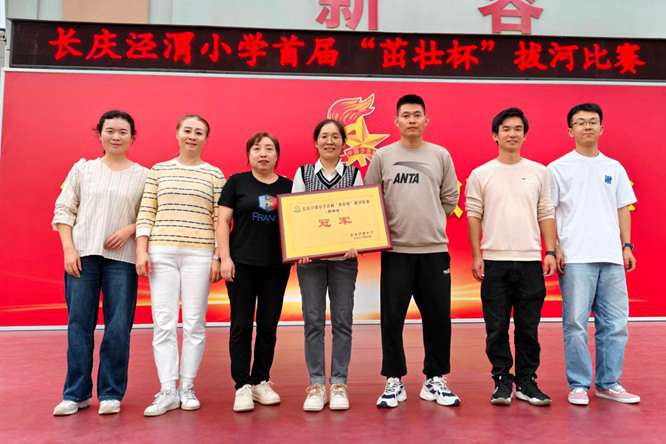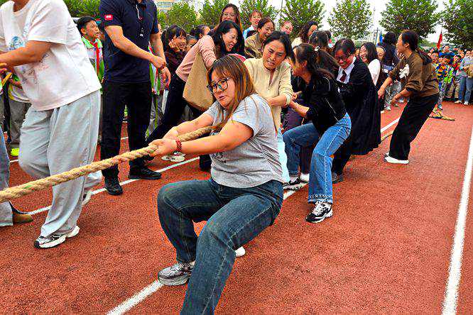 秋高气爽,金桂飘香。在双节来临之际,为了丰富教职工课余生活,缓解教师的工作压力;进一步推动我校教职工体育运动的开展,增强全体教师的凝聚力,发扬我校教师的团队精神,2025年9月30日下午,长庆泾渭小学在学校操场隆重举行了“庆国庆 迎中秋”教职工拔河趣味活动。全体教职工以饱满的热情和昂扬的斗志,共同参与了一场力与美的较量,一场欢声笑语的盛宴。